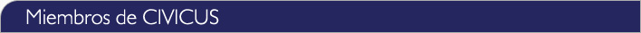 y las personas provenientes de todo el espectro y la diversidad de la sociedad civil. A lo largo de 2010, CIVICUS representó a una amplia e influyente red de organizaciones y redes de la sociedad civil que comprenden a las INGO, redes nacionales, regionales y OSC de las bases en torno a áreas temáticas específicas, como género, clima/medioambiente, pobreza, gobernanza y rendición de cuentas, provenientes de 110 países del Norte y Sur global. Todos los miembros se unen en solidaridad con otras personas y organizaciones afines en apoyo a la misión, la visión y los valores de CIVICUS. CIVICUS apunta a ‘sentir’ las necesidades de sus miembros, servir a sus intereses, reflejar sus puntos de vista en sus posturas públicas y proyectos prioritarios y rendir cuentas. Como consecuencia, en 2010, como parte de su proceso de renovación, CIVICUS trabajó en pos de una mejor integración de sus miembros a un marco más amplio de actividades de CIVICUS. Los planes para este proceso comprenden lograr un mayor alcance regional a la sociedad civil. --------------------------------------------------------------------------------------------------------------------- “CIVICUS, como Alianza Mundial para la Participación Ciudadana en el mundo debe considerar la apertura de oficinas regionales para permitir a sus miembros compartir las mejores prácticas en sus respectivas regiones para influir sobre la red más amplia de la sociedad civil que opera en esas regiones, y actuar como catalizador para incidir en los gobiernos con su trabajo. La Secretaría también debería continuar compartiendo sus hallazgos sobre las tendencias que afectan el trabajo de las organizaciones de la sociedad civil en otras partes del mundo”. - Representante de organización stakeholder de CIVICUS --------------------------------------------------------------------------------------------------------------------- |