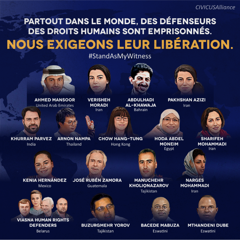 À l'occasion du cinquième anniversaire du lancement de la campagne Stand As My Witness (Soyez mon témoin), l'alliance mondiale de la société civile CIVICUS appelle les gouvernements du monde entier à libérer immédiatement toutes les personnes injustement emprisonnées pour avoir défendu les droits humains.